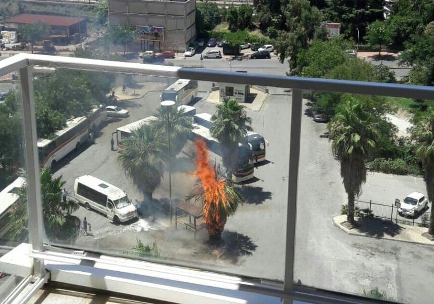 Incendio nella tarda mattina di oggi all'interno del posteggio dei pullman di via Rochester. A fuoco una delle palme nelle vicinanze di una pensilina. Le fiamme hanno scatenato il panico tra i presenti. Subito il personale Sais si è attivato per contattare i vigili del fuoco. Nel frattempo sono stati utilizzati degli estintori sull'esterno di uno dei pullman che si trovava parcheggiato nelle vicinanze della palma probabilmente perché investito dalle fiamme. Per fortuna non si sono registrati gravi danni. Per quanto riguarda la dinamica dell'incendio è probabile che qualcuno abbia gettato una sigaretta sulla pianta o che intenzionalmente le abbia dato fuoco. Il vento ha fatto tutto il resto. (Foto seguonews.it)