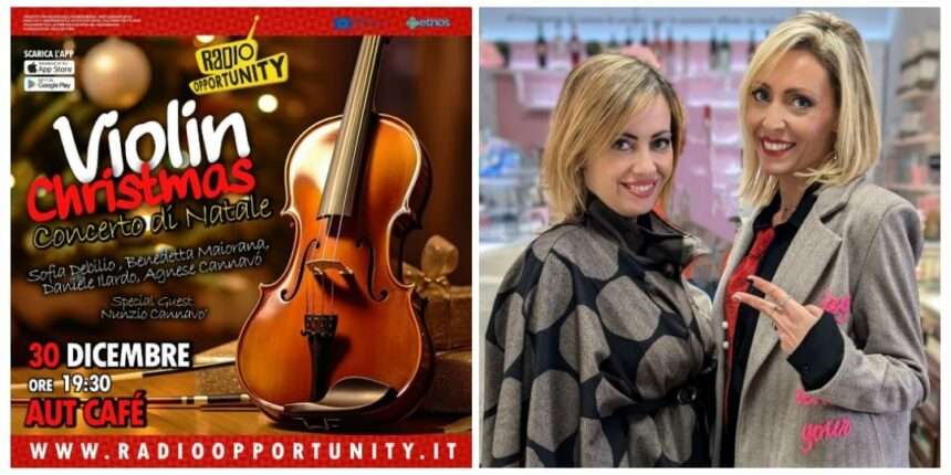 Si terrà questa sera, 30 dicembre, a partire dalle 19.30, nella gelateria solidale Aut Cafè, di via Rosso di San Secondo il concerto di Natale di violini con Sofia De Bilio, Daniele Ilardo, Benedetta Maiorana e Agnese Cannavò, e con la straordinaria partecipazione di Nunzio Cannavò. Lo straordinario evento, che celebrerà la bellezza della musica evocando emozioni con i più classici brani natalizi, sarà condotto da Rita Cinardi e Tania Costa e andrà in diretta su Radio Opportunity.
