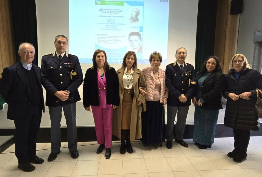 Questa mattina il Questore della provincia di Caltanissetta Pinuccia Albertina Agnello ha deposto un mazzo di fiori ai piedi della targa commemorativa di Giovanni Palatucci, collocata nel 2021, in occasione della “Giornata della Memoria”, nell’area esterna della Scuola Rosso di San Secondo del Capoluogo ai piedi di un albero di ulivo piantumato per la circostanza. La cerimonia si è svolta alla presenza del cappellano della Polizia di Stato don Vicente Genova, della Dirigente Scolastica Loredana Matraxia, della presidente dell’Associazione Bney Efraim Prof.ssa Nazzarena Condemi, dei componenti della locale “Sezione Calogero Zucchetto” dell’A.N.P.S., di una rappresentanza del personale docente e degli studenti dell’Istituto. Giovanni Palatucci, già Questore reggente di Fiume, morto nel 1945 nel campo di concentramento nazista di Dachau, Medaglia d’Oro al Merito Civile e riconosciuto “Giusto tra le Nazioni”, salvò dal genocidio molti ebrei stranieri e italiani. Nel corso della cerimonia, in occasione del “Giorno del Ricordo”, alla presenza della figlia Anna Maria, è stato ricordato anche Luigi Bruno, Guardia Scelta di Pubblica Sicurezza, anche lui in forza alla Questura di Fiume che il 5 maggio del 1945 rimase vittima dei massacri delle Foibe e dell’esodo Giuliano-Dalmata. Per l’occasione alcuni alunni, nell’Aula Magna dell’istituto, hanno letto dei brani dedicati al ricordo della shoah e delle vittime delle foibe, intonando altresì canti ebraici, per ricordare l’estremo sacrificio dei due poliziotti al servizio del loro Paese, entrambi testimonianza di esempio per le giovani generazioni.