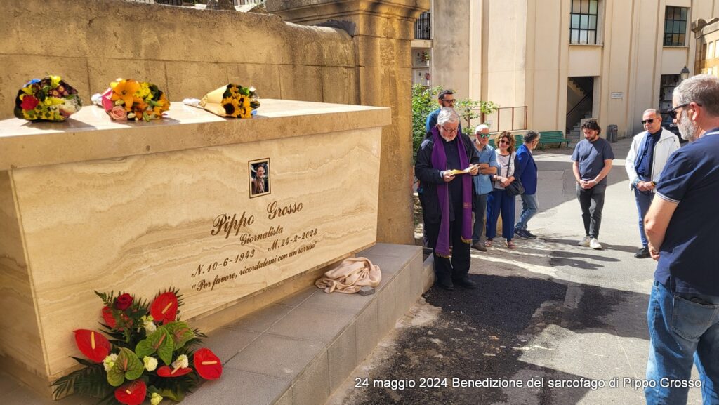 Molti amici e colleghi giornalisti erano presenti per partecipare all’evento. Per l’amministrazione comunale il sindaco Roberto Gambino e l’assessore ai servizi cimiteriali Cettina Andaloro nonché il dirigente della Direzione Lavori pubblici, Giuseppe Tomasella e il direttore del cimitero Salvatore Lombardo. Dopo la benedizione impartita da padre Gaetano Canalella, il sindaco ha ricordato l’impegno di Pippo Grosso in favore della città in qualità di editore libero e sensibile alle problematiche della propria comunità.