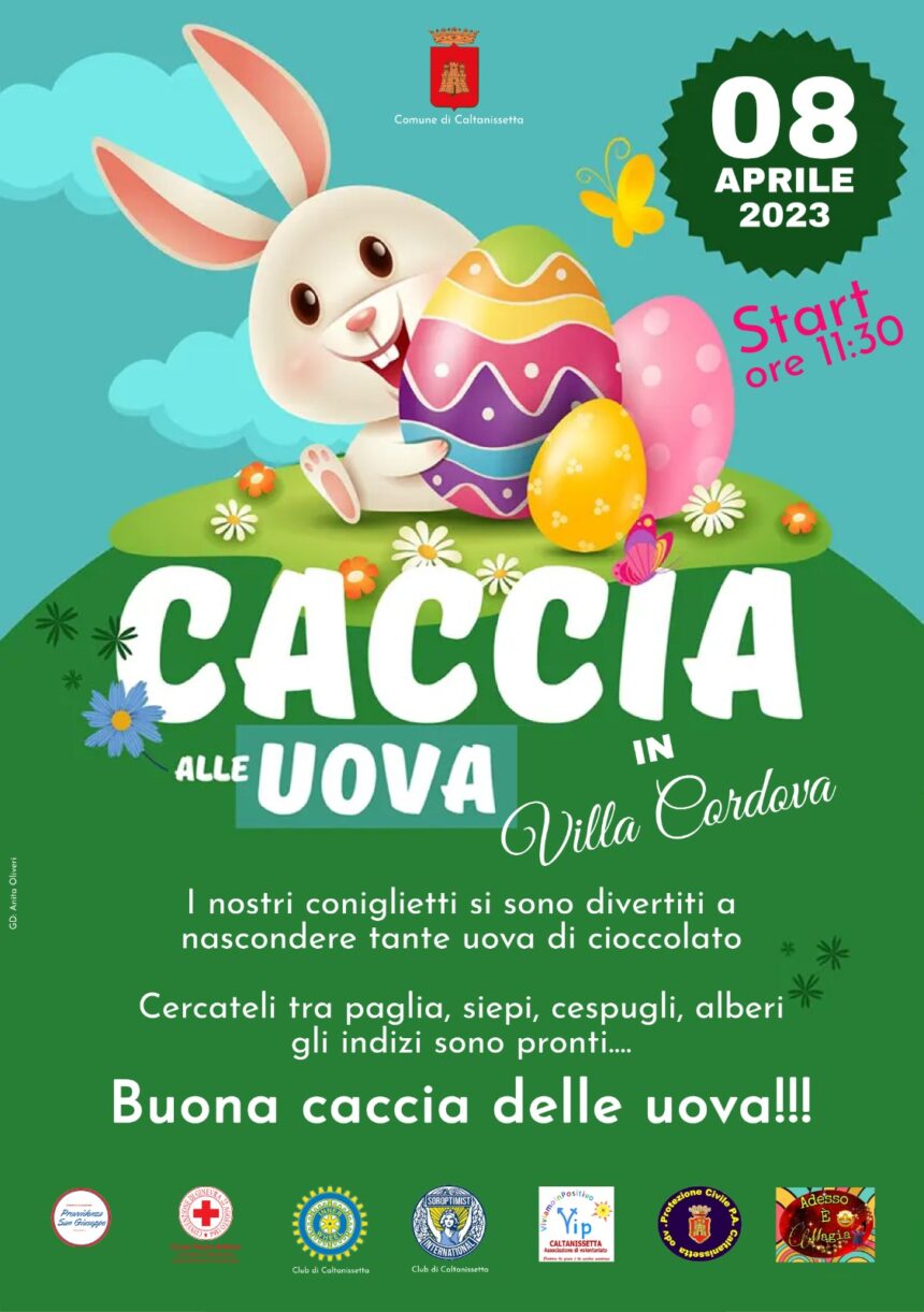 Sabato 8 Aprile alle ore 11.30 Villa Cordova sarà animata da tanti bambini i quali si divertiranno in una Caccia alle Uova ,esplorazione, stupore, allegria e tante sorprese coivolgeranno i piccoli della nostra Città in una sorta di caccia al tesoro, al termine della quale troveranno appunto le uova. Un’idea della consigliera comunale Federica Scalia e del Presidente Comitato Provvidenza Marco D’Arma, patrocinata , dall’Amministrazione Comunale, infatti l’Assessore per le Politiche Sociali Cettina Andaloro si è attivata da subito per l’organizzazione dell’evento.
