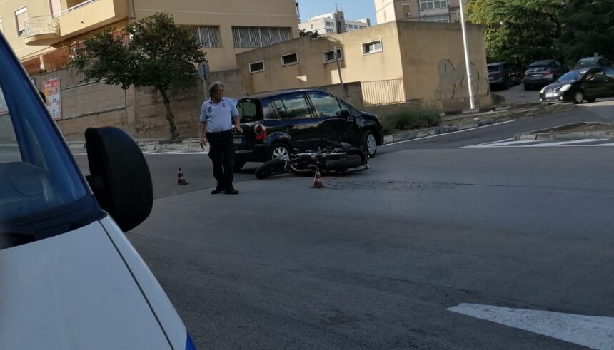 Scontro oggi pomeriggio in via Salvo D'Acquisto tra un'auto e uno scooter. Nell'incidente il conducente dello scooter, un uomo di 40 anni, è rimasto ferito. Sul posto sono intervenuti i soccorritori del 118 che lo hanno trasportato in codice giallo al pronto soccorso dell'ospedale Sant'Elia e gli agenti della Polizia Municipale per la viabilità e la ricostruzione della dinamica. Le condizioni del 40enne non sarebbero gravi. (Foto Seguo News)