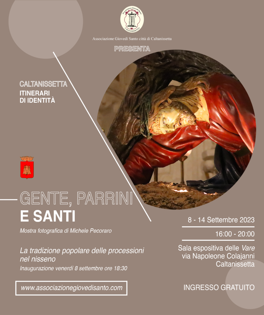Uno sguardo emozionante e autentico sulla fede, la devozione della comunità nissena, evidenziando il ruolo centrale delle processioni nelle celebrazioni religiose e culturali a Caltanissetta: è questo il fulcro della mostra fotografica di Michele Pecoraro “Gente, Parrini e Santi” – La tradizione popolare delle processioni nel nisseno. Questa straordinaria esposizione celebra la ricca tradizione nissena delle processioni, catturando con maestria i momenti più significativi e suggestivi di questo importante patrimonio culturale. Gli scatti di Michele Pecoraro mostrano l'intensità delle emozioni e la devozione profonda delle persone coinvolte.