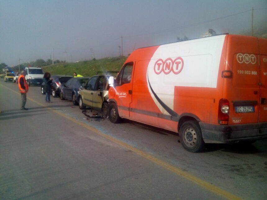 Cinque persone ferite dopo un tamponamento a catena avvenuto questa mattina al km 51 500 della Ss 640, in contrada Grottadacqua a Caltanissetta. Nell'urto ad effetto domino sono rimaste coinvolte una Lancia Delta, una Peugeot, una Fiat Multipla contro le quali è finito un furgone Renault della ditta di spedizioni Tnt. Tutti i veicoli erano diretti verso Agrigento quando s'è verificato lo scontro che ha sballottato i passeggeri, alcuni dei quali soccorsi sul posto dal personale del “118” e altri tre trasferiti al Pronto soccorso dell'ospedale “Sant'Elia”. Qualcuno ha riportato escoriazioni, altri contusioni e colpi di frusta. Le auto sono rimaste parecchio danneggiate a causa del forte urto, tanto da essere caricate sul carro attrezzi perché non più marcianti. La Polizia Stradale di Caltanissetta ha eseguito i rilievi tecnici e ascoltato i conducenti per stabilire la dinamica dell'incidente. Gli operai dell'Anas hanno ripulito l'arteria dai detriti sparsi sulla carreggiata. La circolazione stradale ha subìto lievi rallentamenti. FOTO DI SEGUONEWS.IT