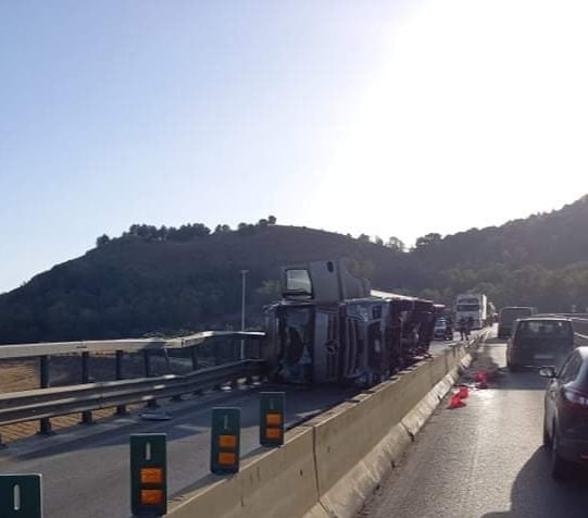 Incidente autonomo questa mattina, intorno alle 4.40, sulla bretella poco prima dell'ingresso per l'autostrada A19 Palermo-Catania. Un mezzo pesante, per cause ancora in corso di accertamento, si è ribaltato dopo essersi schiantato contro il guard rail. Sul posto la polizia stradale di Caltanissetta, i vigili del fuoco e due ambulanze del 118 inviate dalla centrale operativa di Caltanissetta. Due i feriti (G.A. di 46 anni e C.A di 55 anni) trasportati al pronto soccorso dell'ospedale Sant'Elia entrambi in codice giallo. Entrambi erano rimasti incastrati all'interno del mezzo. Nessuno dei due sarebbe in pericolo di vita. Il traffico è rallentato su quel tratto di strada. (Foto Seguo News)