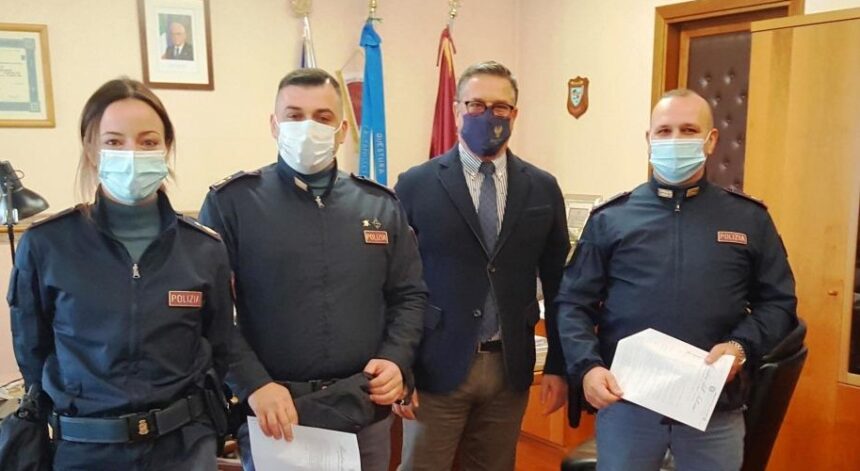 La notte del 14 ottobre del 2016 la volante uno, con a bordo gli assistenti della Polizia di Stato Spagnolo Giovanni e Salute Michele, intervenne in viale Stefano Candura per una segnalazione di furto di autovettura. I poliziotti, nel corso dell’intervento, notarono una BMW, poi risultata rubata, con a bordo tre persone, che sfrecciava ad alta velocità nel chiaro intendo di allontanarsi dal luogo presenziato dalla volante. Ebbe quindi inizio un inseguimento lungo la strada provinciale 1, in direzione Delia, che si concluse al km 4 della predetta arteria stradale quando il conducente della volante, dimostrando alte capacità operative, doti professionali e sprezzo del pericolo, riuscì a sorpassare la BMW e, dopo una repentina manovra, costrinse i fuggiaschi a fermarsi. I predetti approfittando del buio della campagna circostante si diedero alla fuga inseguiti dai due agenti. Nel corso della fuga i malviventi esplosero alcuni colpi di arma da fuoco ai quali gli agenti risposero sparando in aria a scopo intimidatorio. Uno di essi fu arrestato nell’immediatezza, gli altri, grazie alle indicazioni dell’equipaggio composto da Spagnolo e Salute, furono catturati nelle ore successive dal dispositivo di pattuglie dispiegato dalla Polizia di Stato. Stamattina il Questore Ricifari, alla presenza del Commissario Capo d.ssa Stefania Asaro, dirigente della sezione volanti, nel corso di una breve cerimonia, ha consegnato ai due poliziotti il provvedimento del Capo della Polizia, Direttore Generale della Pubblica Sicurezza, che ha decretato la promozione per merito straordinario alla qualifica superiore di vice sovrintendente, con la seguente motivazione: “Evidenziando eccezionali capacità professionali e operative espletava un’attività di polizia giudiziaria che si concludeva con l’arresto di tre pericolosi pregiudicati, appartenenti a un sodalizio criminale dedito alla commissione di gravi reati di tipo predatorio; nella circostanza, al termine di un pericoloso inseguimento, i malviventi esplodevano colpi d’arma da fuoco al loro indirizzo. Chiaro esempio di abnegazione e coraggio”. Per la predetta operazione sono stati decretati anche degli encomi solenni nei confronti di altri agenti della Polizia di Stato contraddistintisi nelle successive fasi che portarono alla cattura degli altri due fuggiaschi.