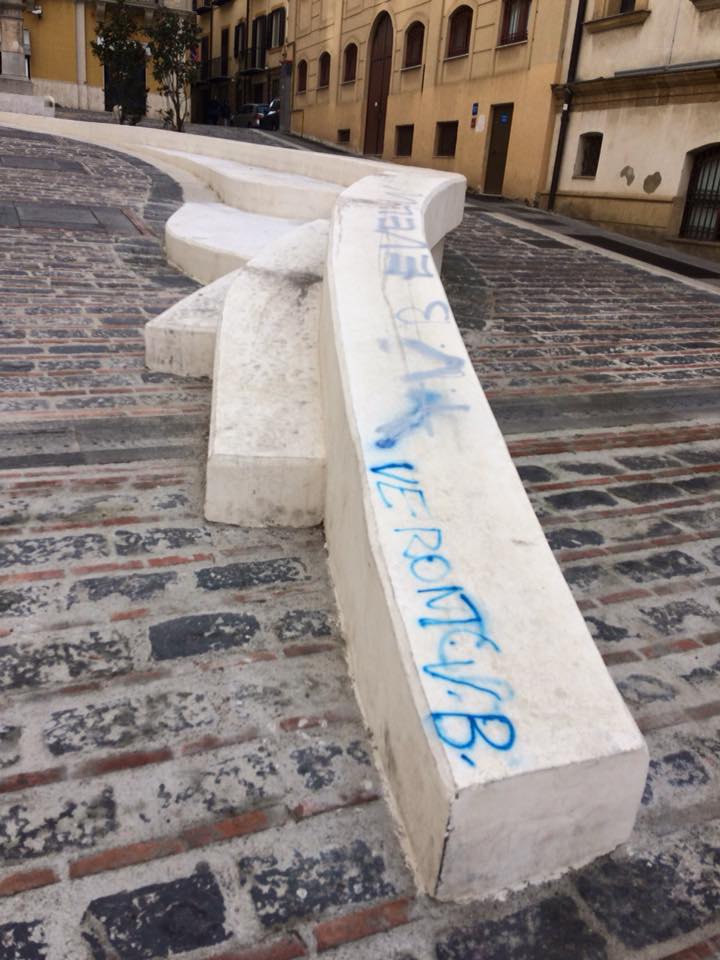 Bombolette spray di colore blu sono state utilizzate, probabilmente nella notte o nella tarda serata di ieri, per imbrattare il lungo sedile in pietra di Salita Matteotti. Un atto vandalico o forse semplicemente la bravata di qualche ragazza (sono stati scritti nomi di donna) che hanno danneggiato seriamente la scultura. La foto è stata postata sui social da Lorenzo Ciulla e ovviamente i nisseni hanno espresso tutta la loro indignazione per questo ennesimo atto di incuranza e inciviltà ai danni di beni pubblici. Adesso probabilmente si potrà risalire agli autori tramite la visione delle telecamere. Non è escluso che il comune possa fare querela per poi costituirsi parte civile costringendo i responsabili a riparare il danno.