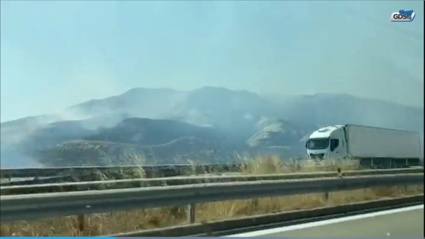 Vasto incendio sull'autostrada Palermo-Catania all'altezza di Ponte cinque archi, nel Nisseno. Le fiamme hanno interessato un'estesa parte di territorio e il fumo era visibile dalla strada.