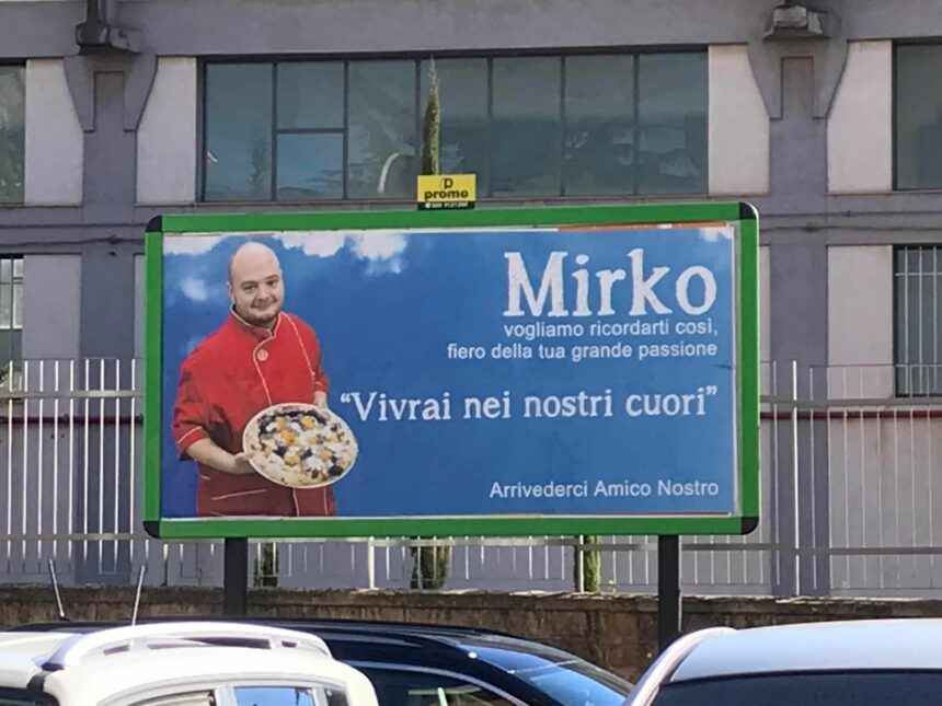 Gli amici non lo dimenticano e non lo dimenticheranno mai. Perché lui era buono, simpatico, gentile, onesto e pieno di voglia di vivere. A una settimana dalla morte di Mirko Mattina, il giovane nisseno stroncato da una pancreatite a soli 26 anni, gli amici hanno voluto ricordarlo con un manifesto: "Vogliamo ricordarti così, fiero della tua grande passione. Vivrai nei nostri cuori, arrivederci amico nostro". Mirko da questa estate aveva realizzato il suo sogno di aprire una pizzeria. Amava il suo lavoro e i suoi amici e i clienti adoravano lui. Un ragazzo che resterà nei cuori dei tanti nisseni che in questi giorni si sono stretti attorno al padre Vincenzo, la madre Fabiola e il fratello Samuele.