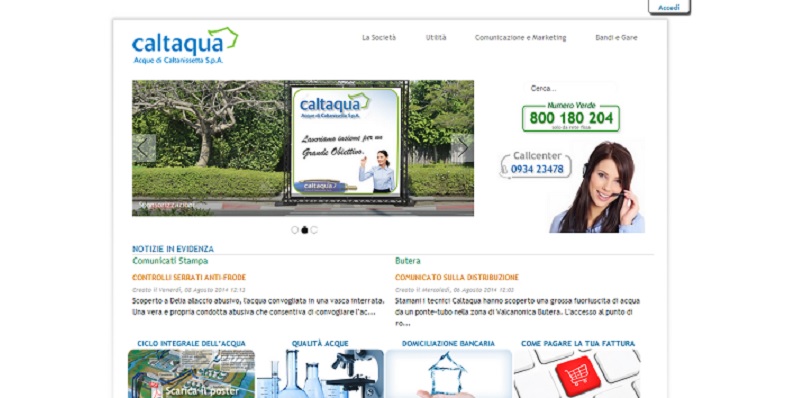“L’attivazione del nuovo sito internet aziendale – spiega l’azienda con una nota – rappresenta un altro tassello del più ampio programma di comunicazione con l’utenza che ha gli altri punti di forza nel front office della sede centrale e di quelle distaccate e nel call center che, come accaduto di recente in occasione del doppio guasto verificatosi lungo le condotte del fornitore Siciliacque, ha gestito nelle fasi più “calde” quasi 500 telefonate al giorno! Un’ulteriore dimostrazione, al di là di qualche isolata lagnanza registrata dagli organi di informazione, di come le donne e gli uomini di Caltaqua attendano ai loro compiti istituzionali con scrupoloso impegno e indubitabile professionalità”.