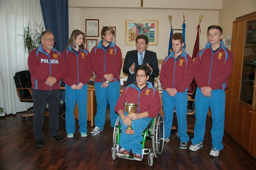 Campione di nome e anche sul podio. E' la parabola di Cristiano Campione, l'atleta nisseno uscito vincente dal campionato regionale paralimpico di pesistica che oggi il questore Filippo Nicastro ha voluto incontrare per complimentarsi dell'ottima prestazione. Campione nei giorni scorsi ha partecipato alla competizione sportiva presso il Palauditore di Palermo, classificandosi al primo posto. L'atleta nisseno, categoria 69 kg, si è classificato primo sollevando 61 Kg di “distensione su panca”. L'atleta tesserato nel gruppo sportivo “Fiamme Oro” della Polizia di Stato – Sezione di Caltanissetta è il primo atleta Fiamme Oro in Italia che partecipa ai campionati paralimpici di pesistica. All'incontro hanno partecipato anche il Maestro Salvatore Parla e altri quattro giovani atleti nisseni del gruppo sportivo: Jury Augello di 19 anni, Dimitri Augello di anni 18, Di Maria Emanuele Thomas di anni 15 e Giuliana Lupo di anni 22. Il Questore Nicastro, insieme al vicario giuseppe Acciaro e al capo di gabinetto della Questura Alessandro Milazzo, ha manifestato il suo vivo apprezzamento per l’entusiasmante risultato sportivo di Cristiano, sin dalla prima uscita ufficiale con i colori delle Fiamme Oro, esortandolo a continuare su questa strada con serietà ed impegno.