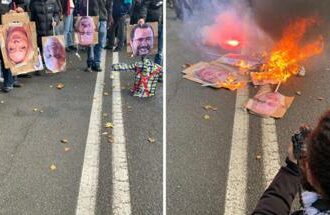 Torino, a corteo pro Palestina bruciate foto di Meloni, Salvini, Crosetto e dell’ad di Leonardo