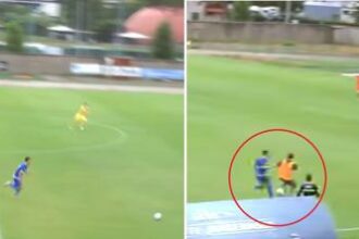 Attaccante sta per segnare? No problem, l’allenatore avversario lo stende – Video