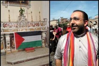 Prete ‘no global’ espone bandiera palestinese sull’altare: “Vangelo ci dice di schierarci”