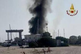 Incendio in un rimessaggio di barche a Ostia, alta colonna di fumo sul litorale romano