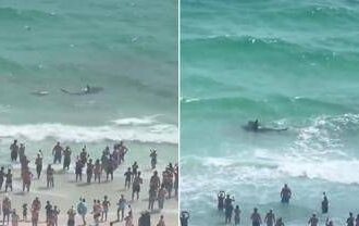 Squalo contro razza, il duello mozzafiato a riva