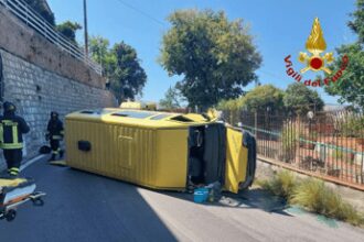 Pulmini con 21 bambini si ribalta, quattro feriti