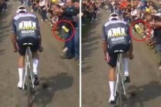 Scandalo Parigi-Roubaix, tifoso lancia borraccia in faccia a Van der Poel – Video