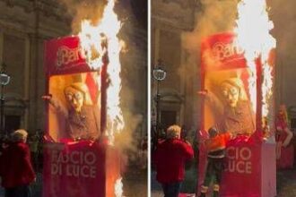 Fantoccio di Giorgia Meloni bruciato al ‘Carnevale liberato’ di Poggio Mirteto