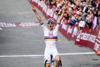 Fenomeno Pogacar, cade e poi vince per la terza volta la ‘Strade Bianche’