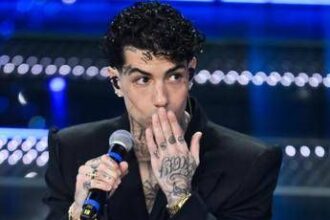 Tony Effe, finale a Sanremo 2025 con il rosario d’oro