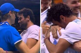 (Adnkronos) - L'Italia vince la Coppa Davis, Matteo Berrettini abbraccia Jannik Sinner…