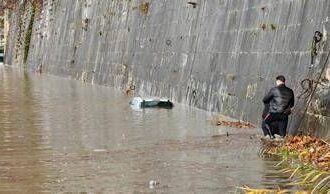Roma, auto sulla banchina del Tevere viene sommersa dall’acqua