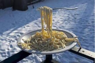 Freddo artico negli Usa, gli spaghetti si congelano e restano sospesi: il video è virale