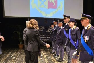 I ventotto poliziotti premiati questa mattina dal Questore e dal Prefetto al teatro…