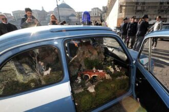 Caltagirone, in mostra presepe di ceramica nella vecchia Fiat 500 della Polstrada