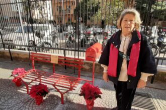 Violenza sulle donne, una panchina rossa di fronte all'assessorato Famiglia. Albano: «Denunciate, non sarete sole»