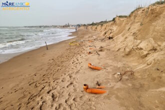 San Leone, dopo il ciclone Harry il mare scopre i resti di un vecchio chiosco