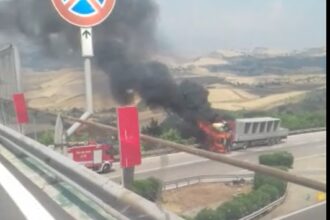 Camion in fiamme sulla A19 allo svincolo per Enna: traffico bloccato