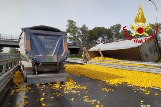 Acireale, autoarticolato perde il carico di agrumi sulla Messina-Catania