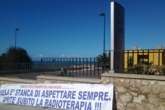 "Gela e' stanca di aspettare sempre, aprite la radioterapia". Con questo striscione,…