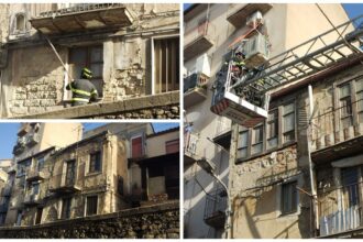 Caltanissetta, grondaia e intonaco pericolanti in via Redentore: intervento dei vigili del fuoco