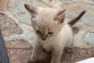 Neve, un gattino di 3 mesi bianco con coda, orecchie e zampe…