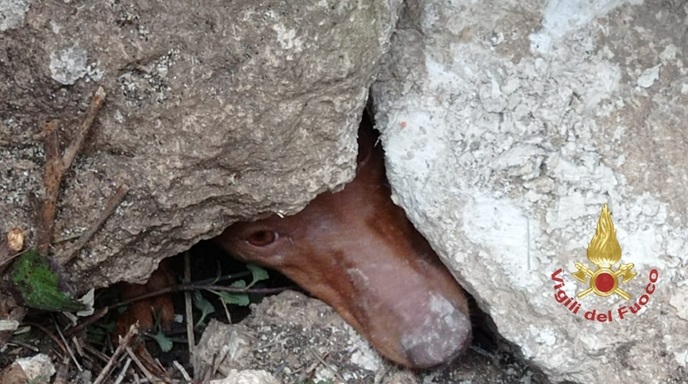 I vigili del fuoco di Palagonia hanno salvato un cirneco dell'Etna che, per inseguire una preda, era rimasto incastrato in un anfratto del terreno e intrappolato tra dei grossi massi. I pompieri, chiamati dal proprietario del cane, sono riusciti con pazienza e attenzione ad aprirsi un varco per poi raggiungere e liberare 'Rocco', questo il nome del cirneco dell'Etna, che ha immediatamente dimostrato la propria riconoscenza ai soccorritori che lo avevano tratto in salvo. Il cane è stato subito dopo riconsegnato incolume e scodinzolante al proprietario. (ANSA).