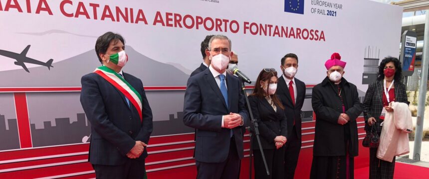 Per la prima volta in treno all'aeroporto di Catania. Questa mattina è stato inaugurata la nuova stazione ferroviaria “Catania Aeroporto – Fontanarossa” che collega lo scalo aereo etneo con la rete ferroviaria regionale, attuando così una intermodalità dei trasporti attesa da anni. «Stiamo dando una svolta in chiave sostenibile alla mobilità – ha detto l'assessore regionale alle Infrastrutture, Marco Falcone, che ha viaggiato sul treno inaugurale partito da Catania Centrale assieme alle altre autorità – perché questa è una struttura semplice, ma assolutamente strategica, sui cui il Governo Musumeci ha sempre creduto e che è stata realizzata grazie all'impegno sinergico di tutti gli attori istituzionali coinvolti.