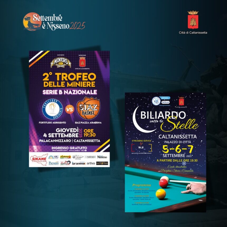 “Biliardo sotto le stelle” | Carambola a 3 sponde e stecca 5-9 birilli: https://comune.caltanissetta.it/it/eventi/biliardo-sotto-le-stelle
