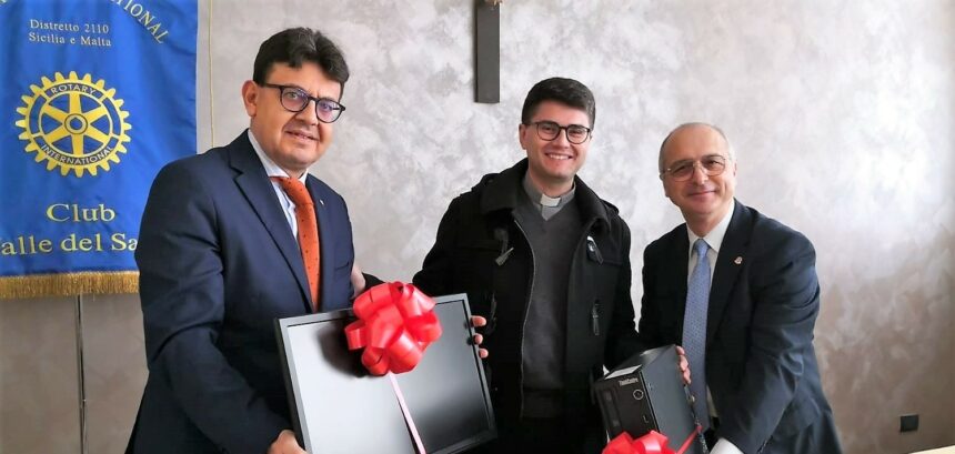 Alla Cerimonia era presente Don Lino De Luca, Parroco, il dott. Luigi Loggia presidente del Rotary ed Eugenio Salvaggio amministratore della “PA Digitale Sicilia srl” sponsor della donazione del pc.