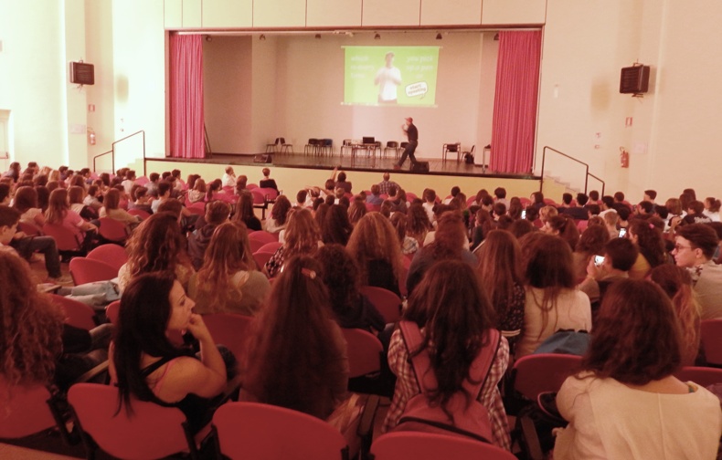 Questa mattina, all’auditorium Alessandro Volta di Caltanissetta, il professore Levigne è stato invitato a condurre due lezioni, ciascuna della durata di un’ora e mezza, rivolte agli studenti delle scuole medie inferiori e alle classi del liceo scientifico.