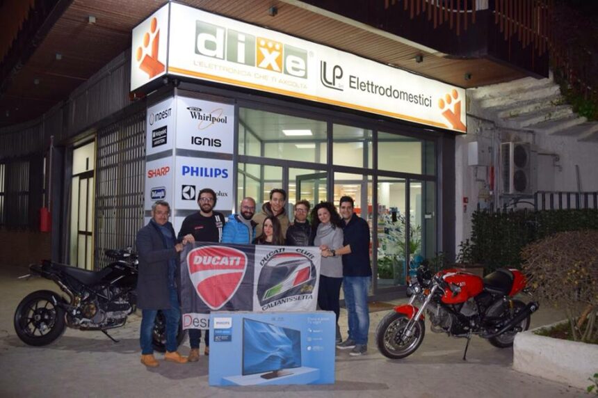 Si è svolta sabato pomeriggio all’interno del negozio Dixe l’estrazione del tagliando vincente della Lotteria del Ducati Club Caltanissetta. La manifestazione che ogni anno il Club organizza per recuperare fondi per le esigenze dell’associazione. In palio quest’anno una stupenda smart tv del valore di 600 euro. La fortunata vincitrice della smart tv che il negozio ha messo a disposizione del Ducati Club Caltanissetta è una ragazza nissena alla quale il biglietto è stato donato da un conoscente. Il tagliando vincente è stato il n°00535. Grande sorpresa quando al telefono ha ricevuto la bella notizia tanto da credere in un primo momento che si trattasse di uno scherzo, quando trenta minuti dopo ha invece ricevuto il premio lo stupore si è trasformato in gioia. La lotteria del Ducati Club Caltanissetta ha avuto anche quest’anno un successone con una vendita di oltre 1500 biglietti durante tutto il periodo natalizio, il ricavato verrà destinato all’allestimento di una sede per l’associazione. Il Presidente Giuseppe Galiano ha voluto ringraziare il negozio Dixe per aver fatto da sponsor alla lotteria ed i tanti esercizi commerciali di Caltanissetta che si sono offerti per fare da punto vendita dei biglietti.