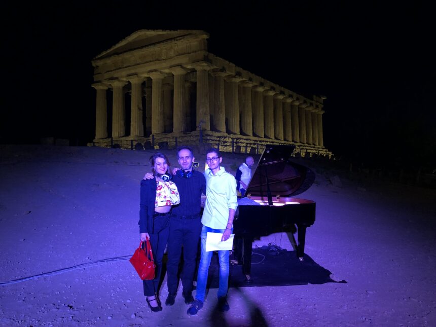Due alunni frequentanti la seconda classe del Liceo Classico Paritario “Pietro Mignosi” di Caltanissetta Karla Bufalino e Mattia Augello hanno recitato Saffo e Catullo al SilentWifi Concert tenuto da Andrea Vizzini nello scenario unico e affascinante della Valle dei Templi. Karla ha recitato in greco-lingua originale il Carme di Saffo meglio conosciuto come Ode della Gelosia, la più antica espressione poetica che riesce a comunicare al lettore la percezione della passione amorosa, quando il tremore ti scuote tutta, il sudore si spande per tutto il corpo, non ci vedi più con gli occhi, rombano le orecchie, diventi più verde di una foglia e ti senti quasi morire. Mattia ha recitato Catullo carme 51, interpretazione in latino della poesia di Saffo e l’attore Antonio Gargiulo ha letto lo stesso carme nella traduzione di Quasimodo, mentre il pittore Valerio Cassano dipingeva ispirato dalla musica, dalla poesia, dalla magia di un luogo unico al mondo. Il SilentWifi Concert, nel silenzio della notte ai piedi del Tempio della Concordia illuminato dalla luce calda e soffusa è udibile solo attraverso le cuffie. Il pianista Andrea Vizzini ha già tenuto il SilentWiFi Concert™ in alcuni dei luoghi più suggestivi d’Italia come il Vittoriale degli italiani, Piazza dei Cavalieri a Pisa, il Castello Sforzesco e l’Arco della Pace a Milano, registrando puntualmente numeri da record e coinvolgendo ad oggi oltre 10.000 spettatori. Il concerto nella Valle dei Templi- dice l’Architetto Giuseppe Parello Direttore del Parco-ha sorpreso ed emozionato gli spettatori affascinati dalla musica interpretata con estrema sensibilità dal pianista Andrea Vizzini coinvolti tutti nell’atmosfera di sogno che solo la Valle dei Templi di Agrigento sa regalare.