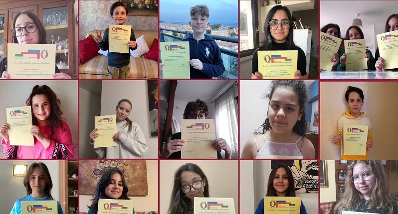 Anche quest’anno la nostra scuola ha avuto il piacere di partecipare al Tableau d’honneur dell’AMOPA .Giorno 4 maggio si è svolta in videoconferenza la premiazione degli studenti della s.s. di I° “G.Verga” che si sono distinti nello studio della lingua francese. Agli alunni è stato consegnato il prestigioso certificato di iscrizione nell’albo d’oro dell’AMOPA ,l’Association Membres Ordres Palmes Academiques che riunisce quanti hanno ricevuto le Palmes Academiques cioè la prestigiosa onorificenza creata nel 1808 da Napoleone che è posta sotto il patrocinio del presidente della Repubblica francese.I certificati sono stati consegnati virtualmente dalla presidente della sezione italiana Ida Rampolla del Tindaro.