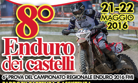Domenica 22 Maggio 2016 si svolgerà l’ “8° ENDURO DEI CASTELLI” valevole come 6^ prova del Campionato Regionale Enduro – Sicilia 2016. La gara sarà organizzata dal Motoclub Fuorigiri è vedrà la partecipazione di circa 130 piloti provenienti da tutte le provincie siciliane. Le operazioni preliminari verranno svolte il sabato, 21 maggio, dalle ore 11,00 alle ora 13,00 e dalle 14,30 alle 18,30, con iscrizioni e verifiche presso i locali dello stadio Marco Tomaselli.