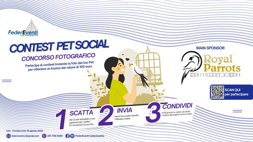 FederEventi Caltanissetta, è lieta di annunciare il lancio del “Contest Pet Social”. Si tratta di un'iniziativa divertente e coinvolgente che, partendo dal cuore della Sicilia a Caltanissetta, celebrando la straordinaria bellezza e l'irresistibile simpatia dei nostri amici animali. Questo concorso è pensato per tutti gli amanti degli animali domestici e vuole valorizzare il legame speciale tra pet e proprietari, creando un momento di gioia e condivisione per l'intera comunità online.