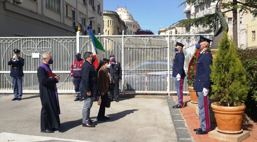 Non poteva mancare però il ricordo dei Caduti della Polizia di Stato e, alle ore 10.30, alla sola presenza del Prefetto Chiara Armenia, sono stati commemorati con la deposizione di una corona da parte del Questore Emanuele Ricifari presso il monumento a loro dedicato in Questura.