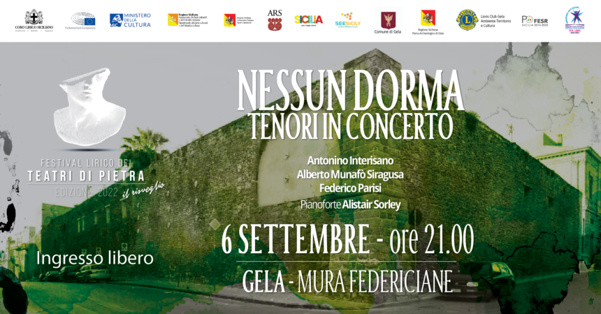 Una serata che celebrerà il "risveglio" delle arti e delle emozioni nella città greca di Gela dove il fascino della storia e della leggenda si fondono in un abbraccio sempre attuale. Il Festival Lirico dei Teatri di Pietra, riconosciuto come iniziativa di alto rilievo culturale e artistico, si svolge sotto l'Alto Patrocinio del Parlamento Europeo e delle più importanti cariche istituzionali italiane e internazionali, il Ministero per I Beni e le Attività Culturali e per il Turismo, il Patrocinio del Pontificium Consilium de Cultura, della Regione Siciliana, Assessorato Regionale Turismo, Sport e Spettacolo e Assessorato dei Beni Culturali e dell'Identità Siciliana, della Rai Sicilia, del Comitato Pietro Mascagni, della Fondazione Verona per l'Arena, della Confederazione Italiana Archeologi, di ENIT, di Archeologia Viva, di AIAM, etc.Anche per l'edizione 2022 il Festival Lirico dei Teatri di Pietra ha ottenuto il prestigioso marchio di qualità europeo Effe Label che viene assegnato dall'European Festival Association ai più prestigiosi Festival del panorama artistico e culturale europeo.