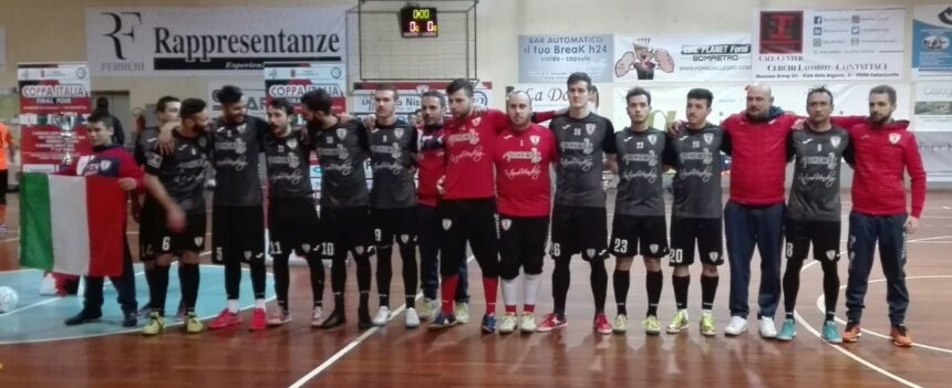La Pro Nissa non sbaglia al primo importante appuntamento della stagione. Un successo storico per la società nissena che entra di diritto tra le formazioni più quotate nel panorama siciliano. Nonostante le condizioni climatiche, non certo delle migliori, con abbondanti nevicate nelle ore vicine alla partita, gli oltre 200 spettatori, la maggior parte di fede nissena, hanno assistito ad una gara che ha visto i biancorossi letteralmente padroni del campo; Una gara perfetta sia sul piano offensivo che difensivo nulla a che vedere con la gara di semifinale dove non si è certamente visto la migliore Pro Nissa. Nella finale, invece, i ragazzi non hanno disatteso mettendo in grossa apprensione un avversario che privo della pedina più importate Chirco ha subito le giocate andando sotto nel primo tempo grazie alla rete di Mosca che apre le marcature e di Lo Bongiorno abile a concretizzare al meglio uno schema su calcio di punizione ben servito dallo stesso Mosca. La prima frazione di gioco si chiude così per 2 a 0. Nella ripresa si aspetta la reazione avversaria ed invece è ancora la Pro Nissa a farsi pericolosa sospinta da un tifo assordante; I lilibetani provano ad alzare il baricentro del gioco per evitare ulteriori rischi, ma Marino e compagni sono davvero in giornata di grazia e al 12’ arriva la rete del 3 a 0 con Borges che servito da La Malfa non sbaglia mettendo alle spalle del portiere. A firmare il poker ci pensa capitan Marino al 17’ che in contropiede deposita agevolmente in rete. Si chiude così virtualmente la partita. Le altre reti al 22’ ancora con Marino, al 24’ con Borges, al 25’ con La Malfa (per lui terza Coppa Italia considerando quella vinta con l’Ennese e con la Nissa Futsal). A chiudere il tabellone dei marcatori il giovane Agnello; Da segnalare il debutto di Filippo Costa nei minuti finali. Al triplice fischio vero e proprio tripudio in tribuna e sul parquet del Pala Milan tra tifosi e giocatori uniti in un unico abbraccio nel corso della premiazione finale da parte dei delegati della Lnd Giuseppe Anzaldi e Scarantino e Michele Scarantino. Tra primo e secondo tempo spazio alla premiazione per il campione europeo e italiano in carica di sollevamento pesi Mirco Scarantino e del padre Giovanni. Smaltita la giusta euforia dei festeggiamenti, martedì si ritorna in campo per preparare la sfida esterna in campionato contro il Monreale. C’è in ballo la conquista della serie B, pensando anche alla Coppa Italia nazionale da onorare nel migliore dei modi.